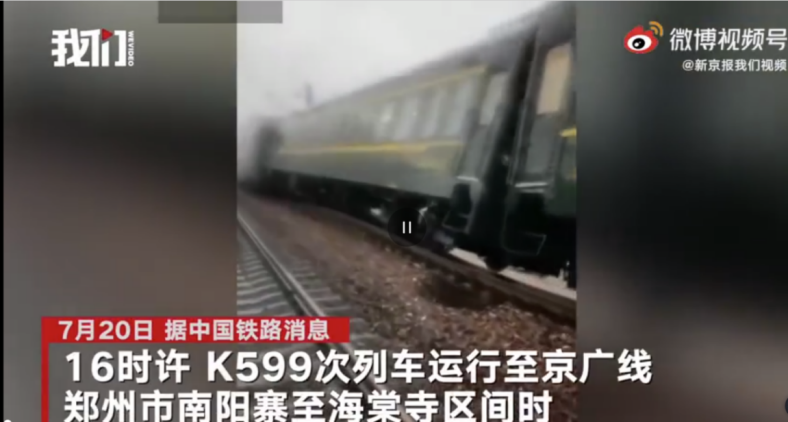 下午16點,包頭開往廣州的K599次列車途徑鄭州南郊,火車司機張志傑發現**前方路基被水漫過,**馬上緊急停車,疏散乘客。