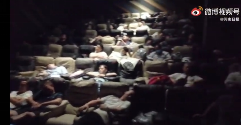 鄭州花園路農業路的一家電影院也加入留宿的行業,為附近市民免費提供休息場所。該影院靠近商圈,有很多人來這裏避雨休息。
