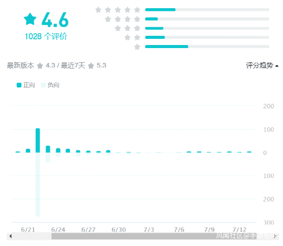 口碑評分:上線首月,Taptap評分4.6分,評分趨勢1-3星居多,開服首日負向評分高過正向評分。
