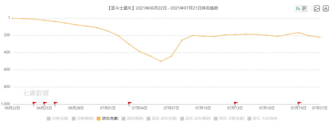 《聖鬥士星矢:正義傳説》iOS遊戲免費榜走勢,數據來源:七麥數據