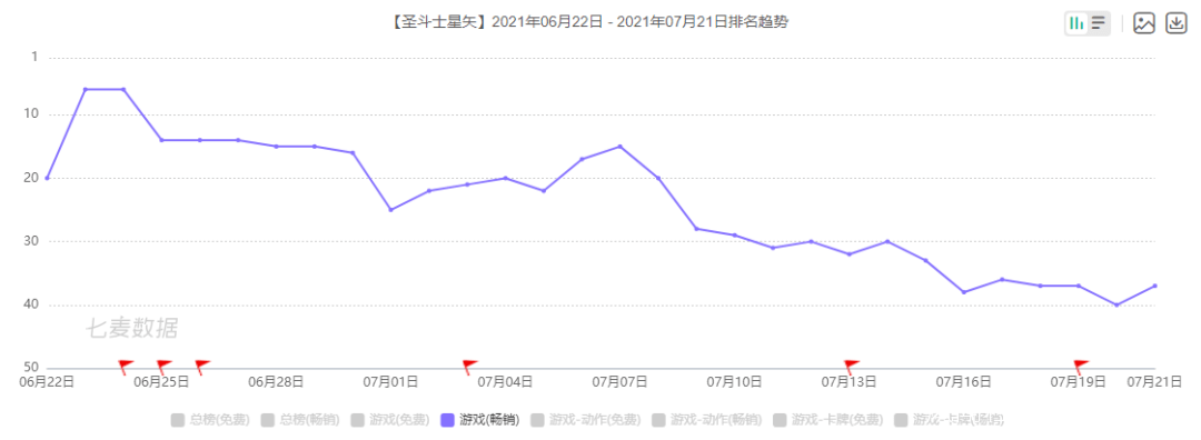 《聖鬥士星矢:正義傳説》iOS遊戲暢銷榜走勢,數據來源:七麥數據