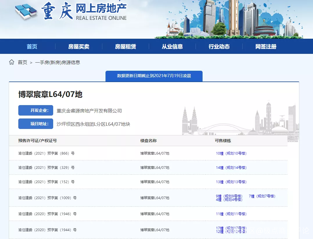 重慶網上房地產官網顯示,截至7月19日,博翠宸章可售樓棟有9幢,但並不包括目前在售主力6號樓和8號樓。