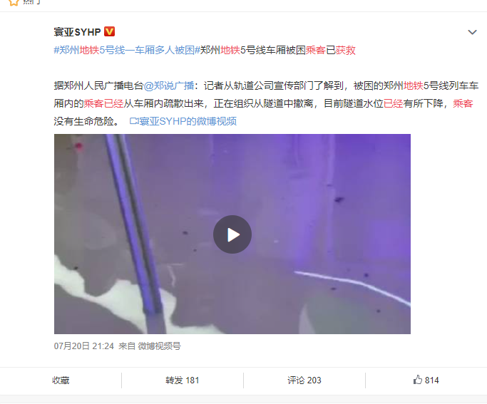 關於鄭州受災的所有視頻裏,最讓人揪心的就是地鐵站裏的滾滾洪流。