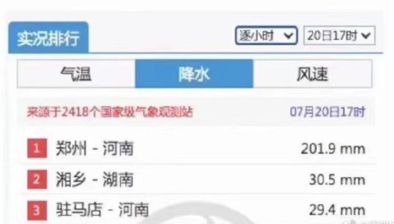 如果相關數據沒有作假,那鄭州昨天經歷的可以説是千年不遇的極端降水,畢竟16點-17點,鄭州的降水量是201.9毫米。
