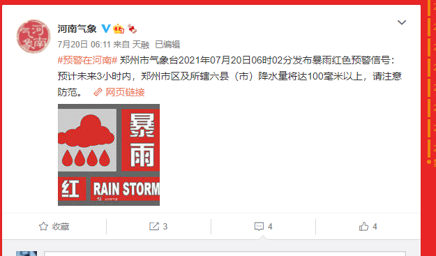 鄭州極端暴雨前,河南氣象局連發了七個紅色警報..._風聞