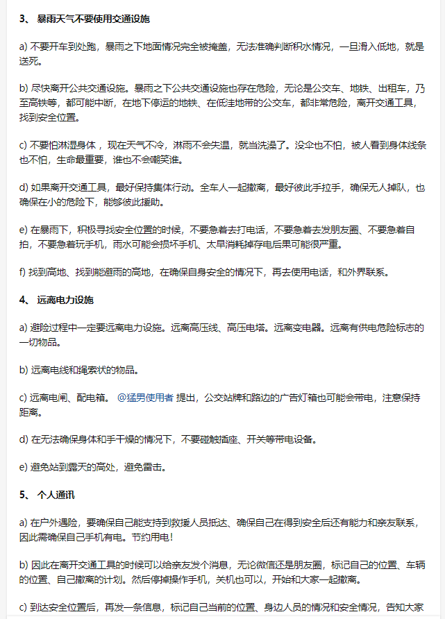 最後,在暴雨天氣,有一些注意事項。來自於知乎@甄昊元,都是乾貨。