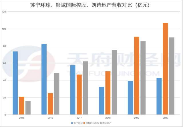 “吃老本”的同時,蘇寧環球的營收規模已經遠遠落後於同一時期起步的區域性地產公司。