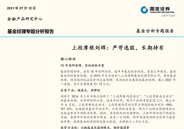 近期“出爐”的基金經理研究報告則有上投摩根劉輝、永贏基金李永興等。