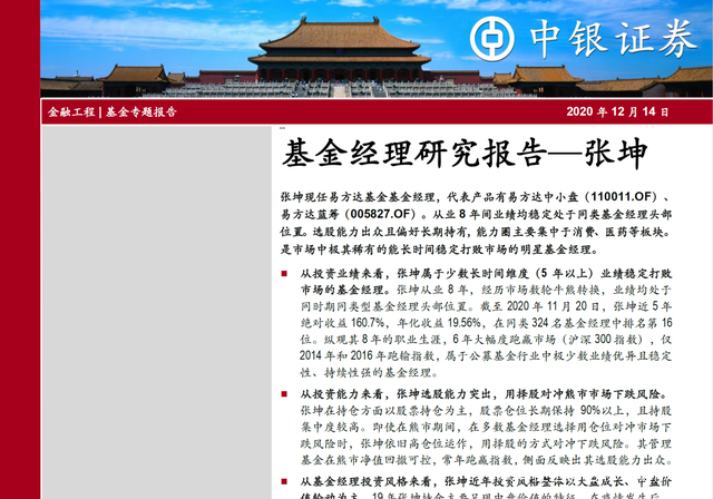 早在2018年12月,興業證券分析師任瞳、姚紫薇就發表了一份揭秘易方達基金張坤的研究報告。