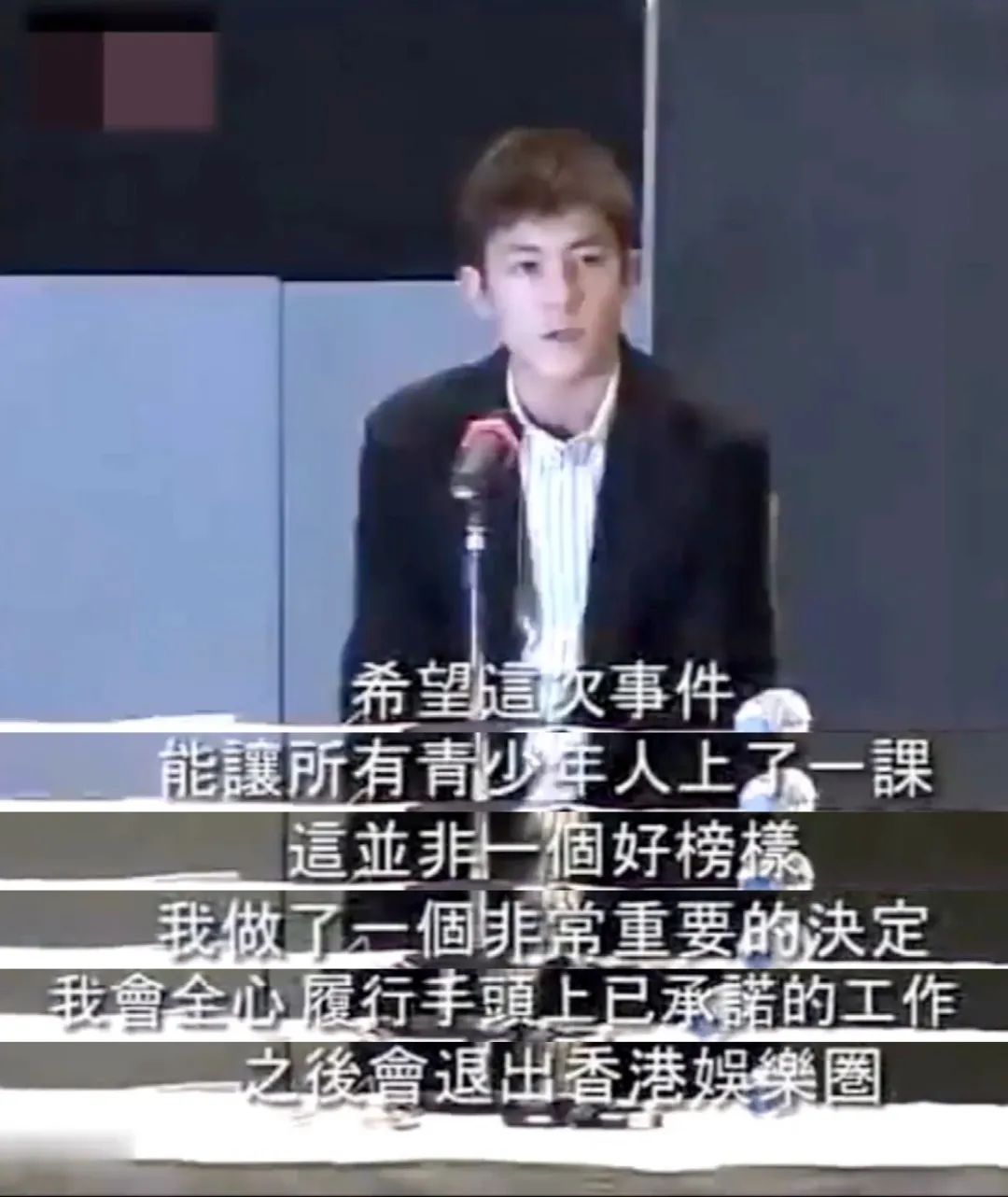**宣佈無限期退出香港娛樂圈,**之後將配合警方調查,希望能得到大家的原諒,並給他一次機會。