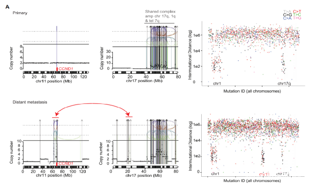 在該篇文章中,科研人員們從170名乳腺癌患者中,獲取了全基因組的測序數據。通過一系列研究表明,那些引起癌症轉移或復發的“癌症種子”,與最初的癌細胞有着類似的變異過程。但發生遠端轉移的癌細胞,則出現了原代癌細胞中不曾見的變異,且這些變異的癌細胞能不斷驅動癌症的發展。