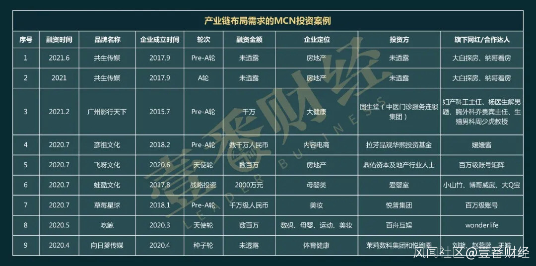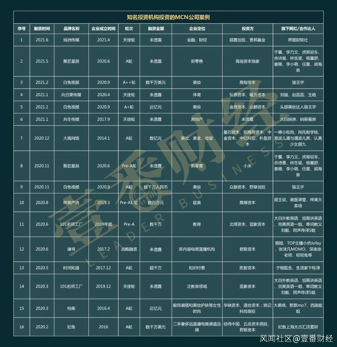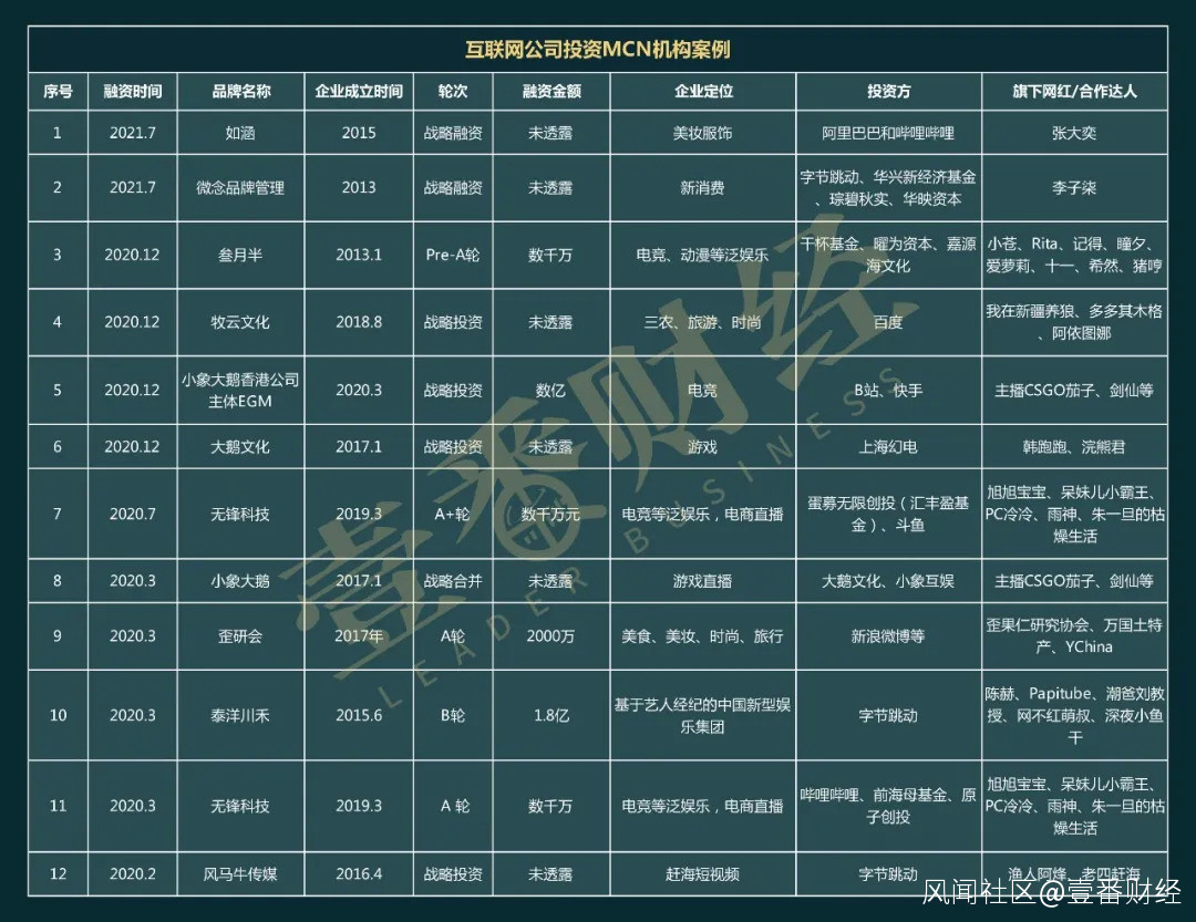 回顧2020年以來MCN機構融資情況,再次起底MCN的資本局,究竟誰還是MCN背後的資本金主。