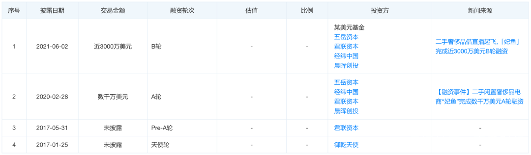 二手奢侈品直播電商渠道品牌MCN妃魚,則獲得數千萬美元的A輪融資,來自經緯中國、五嶽資本領投,老股東君聯資本(也是謙尋的投資方)跟投,客單價較高的奢侈品也進入了直播渠道。