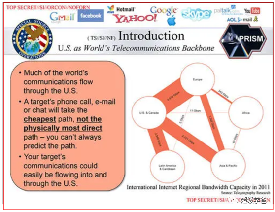 而類似於641A這樣的基礎設施,美國已經至少部署了10~20個,基本上實現了對全球骨幹光纖網絡甚至其他國家內部光纖網絡的流量攔截與實時監測。