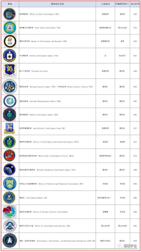 在這樣的思想指導下,美國擁有世界上最龐雜的情報系統,共有18個情報機構,包括大名鼎鼎的中情局(CIA)、國安局(NSA)、聯邦調查局(FBI)。