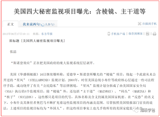 2013年6月,英國的《衞報》和《華盛頓郵報》 突然爆料,美國的情報機構從2007年開始實施了“稜鏡計劃”,監控世界互聯網活動、秘密收集電話記錄。