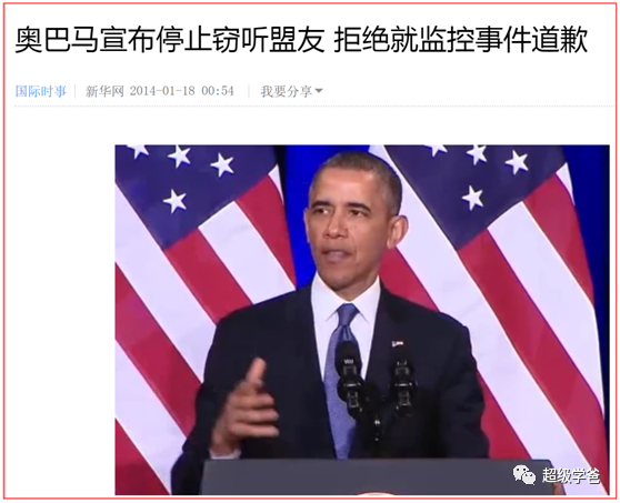 美國這回可是犯了眾怒了,所以2014年1月,奧巴馬很不情願地做出承諾,表示將停止美國情報機構對“友國和盟國”領導人的監聽。