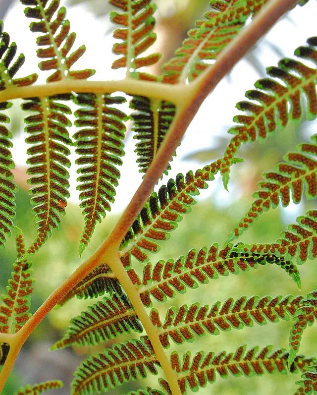 適當的時候,翻開一種種蕨類植物的葉片,你會發現許多與葉脈緊密相連、排列成組且如蟲卵一般的東西。別擔心,這些其實是蕨類植物的孢子囊羣,是由許多盛滿了孢子的孢子囊組成。每個孢子囊羣中含有很多孢子囊和數以千計的孢子,它們一旦成熟,就可以隨風飄散。