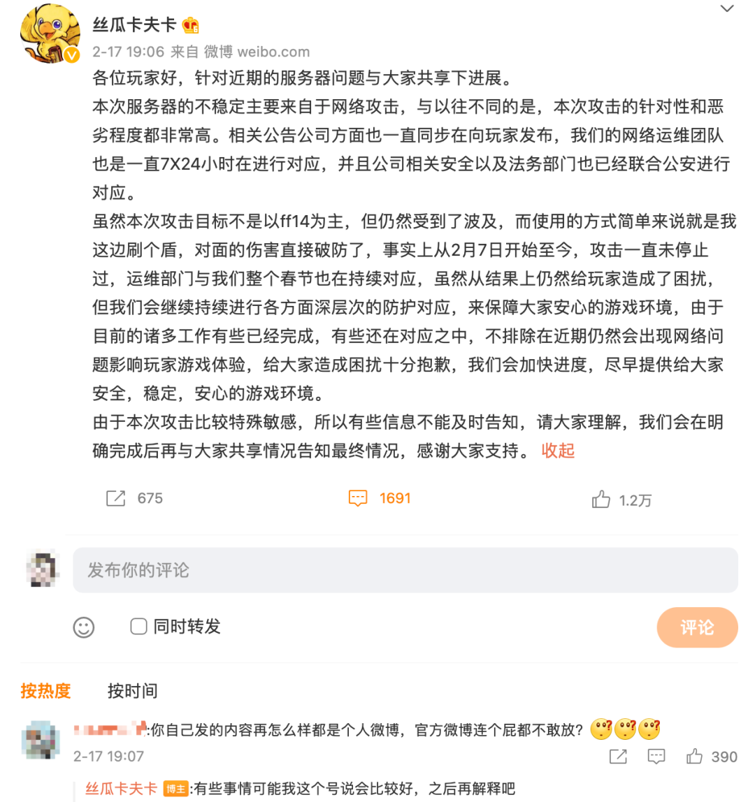 項目組的運營方式也發生了一些轉變。官方微博和玩家的溝通越來越頻繁,絲瓜乾脆自己開了個號下場,接受玩家的指責,也與玩家天南地北地聊,「像朋友一樣」事無鉅細地給玩家交代此後項目組要做的所有事情。