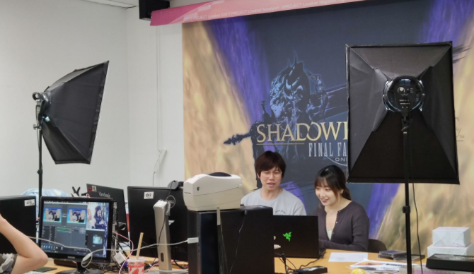 直播的房間在辦公室最裏面,需要穿過狹窄的過道,進門處堆放着一些雜物,屋子怎麼看都像是用倉庫改造的,裏頭稍微寬敞一些的地方用一張巨大的《FF14》5.0海報當作背景板。