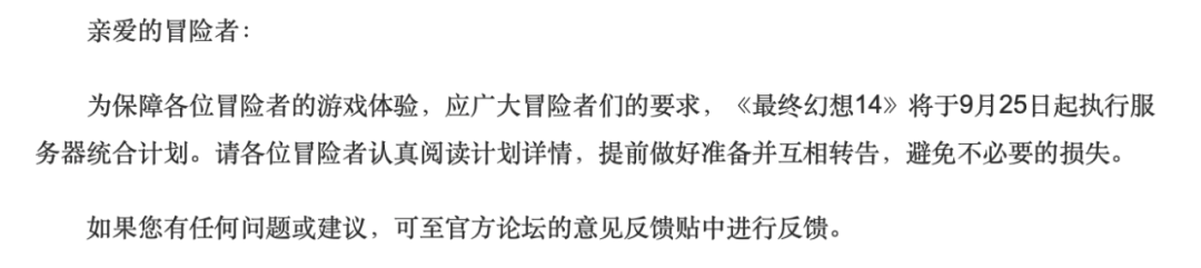 絲瓜在內的高層與日方來回溝通。雙方最終敲定下來,國服短期內不會關服,繼續撐着,日方需要快速拿出合服工具,來降低國服的服務器成本,緩解盛大的支出負擔。另一方面,盛大內部也提出建議:再觀望半年,如果半年內數據仍無起色,那麼將會考慮關閉《FF14》國服。