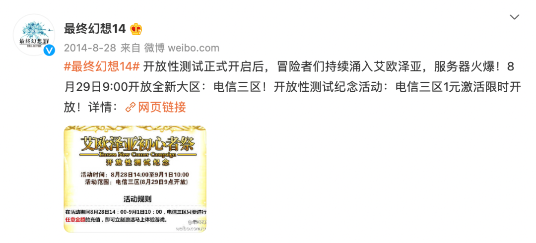 2014年8月25日,遊戲上線,這份自信推着盛大飛快開服,短時間內從3個大區30個服務器,堆至4個大區40個服務器。傳統遊戲運營理念就是先把用户堆上去再説,IP有保障,海外有成績,誰都沒有懷疑《FF14》的國服承接能力。即使產品玩法可能會水土不服,後續只要套上盛大跑通的本地化運營就好。