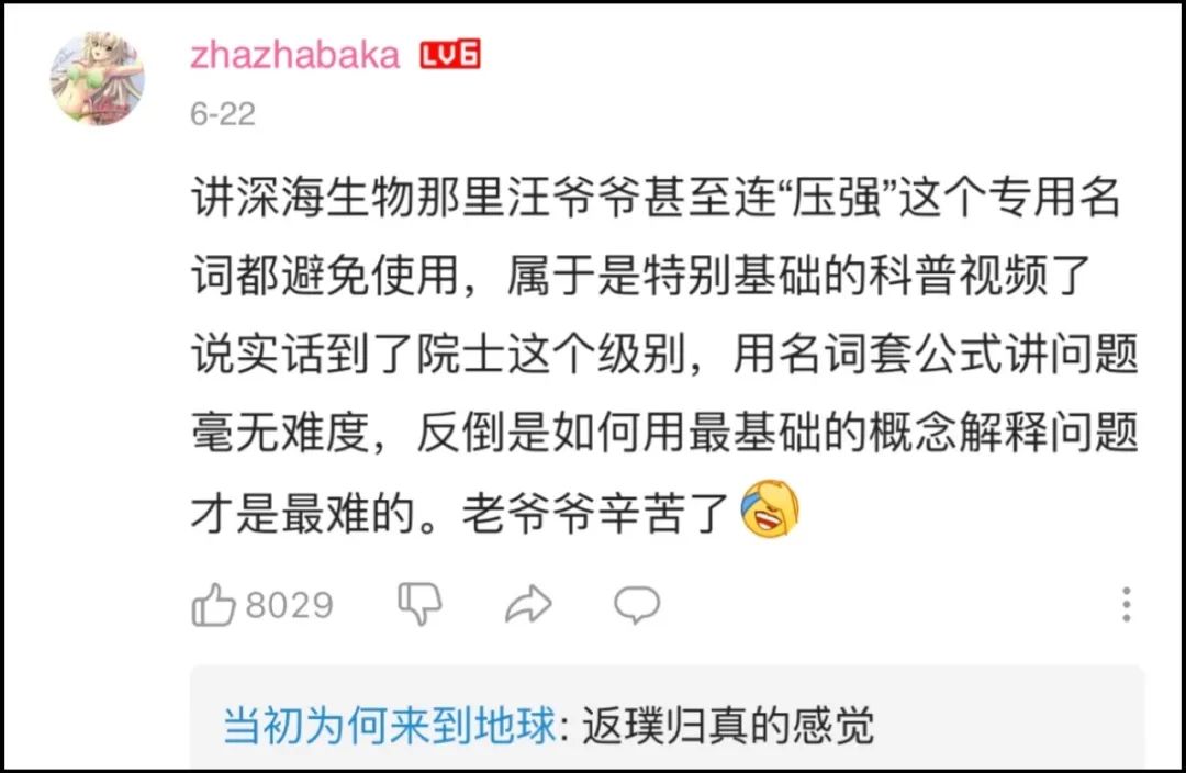 汪品先院士接受B站採訪時也曾表示:“搞科學就是要儘量淺顯易懂。”