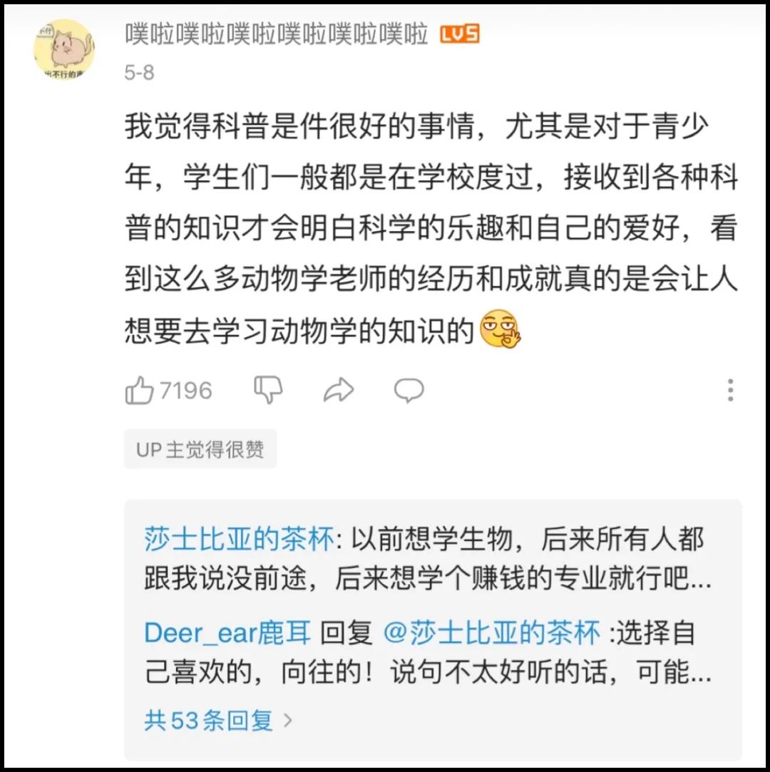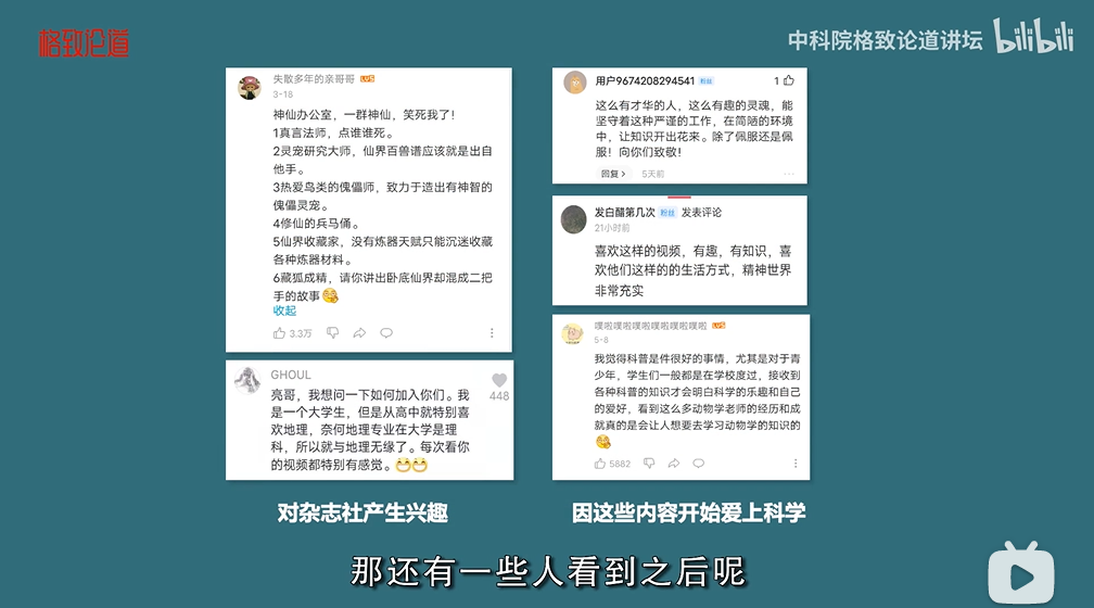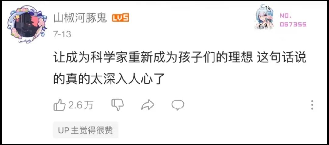 大家都在翹首以盼,期待更多科學工作者來B站創作。希望在這樣的氛圍下,有越來越多的科學工作者走進公眾視野,讓值得尊敬、意義非凡的科研工作為大眾所瞭解。