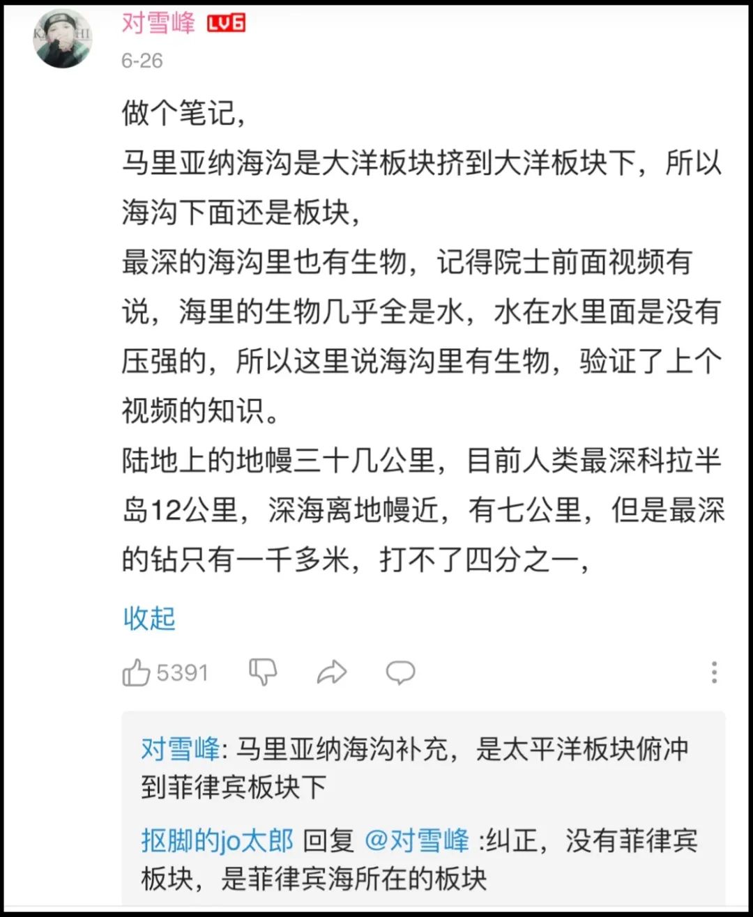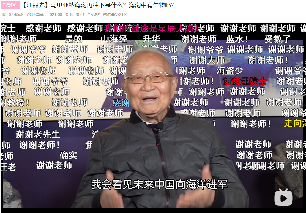 近年來,我國載人潛水器取得了突破性成就,成功探底萬米深的馬裏亞納海溝,引發了大家對深海的好奇。汪院士在B站上專門出了一期視頻為大家答疑解惑,引來幾百萬人滿懷敬意地在線聽課。
