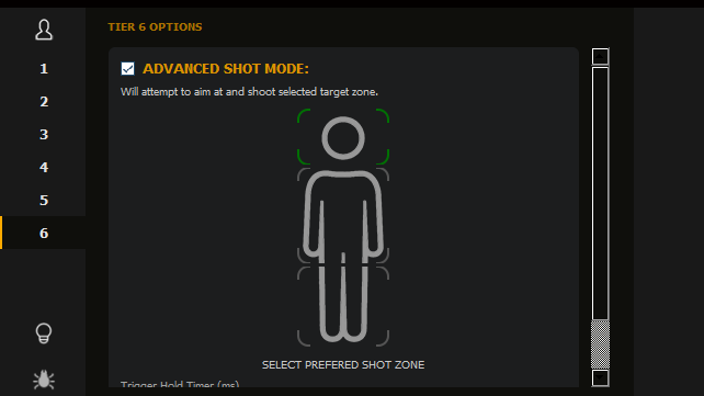 你甚至可以在設置裏選擇想要擊中的是頭部,胸部還是下肢。