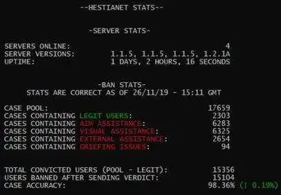 之後專業反作弊團隊和遊戲製作們會通過人工判斷這些人是否在作弊,有沒有用到什麼新外掛,然後連人帶軟件一鍋端。