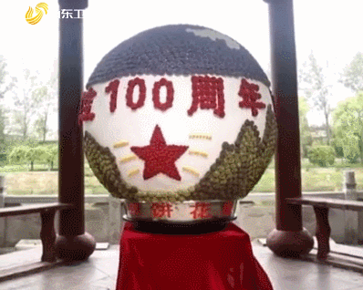 用9900朵煎餅花製成了一個綿繡花球,來為黨慶生,前前後後花了一個月的時間。