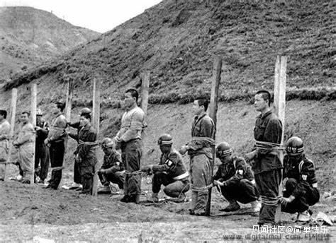 (2)將民眾一批綁在柱子上,然後槍殺;
