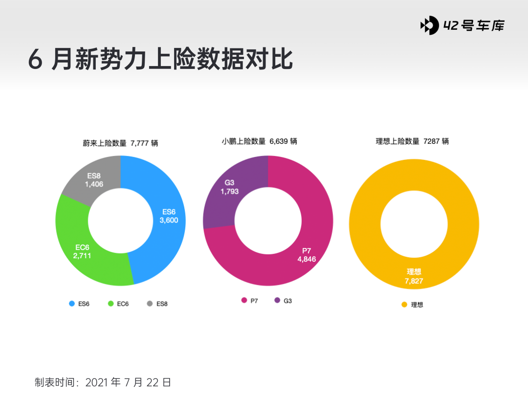 理想 6 月的上險量為 7,827 輛!這讓理想從 5 月的第三直接躍升至新勢力上險量的第一。有媒體稱,理想是從 5 月銷量榜單第四的位置躍升上來的,這説法多少有些不太嚴謹。