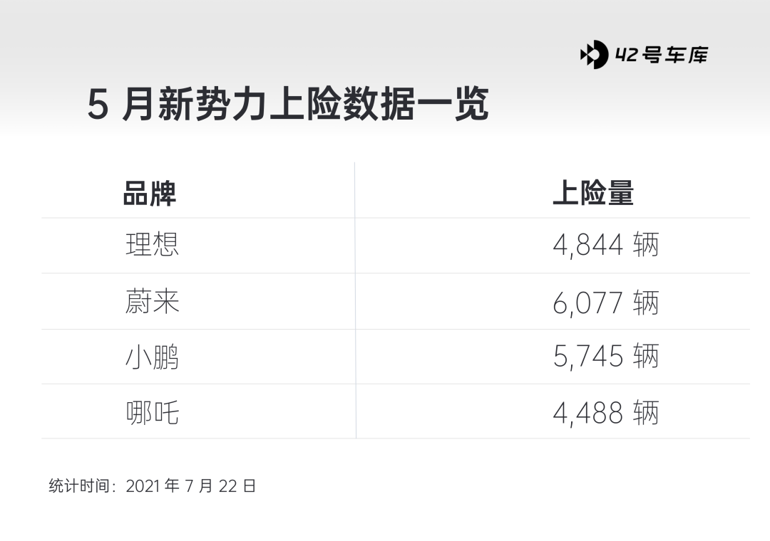 根據我庫的後台數據,理想的 5 月的上險量為 4,844 輛,不敵蔚來(6,077 輛)、小鵬(5,745 輛),位居第三。