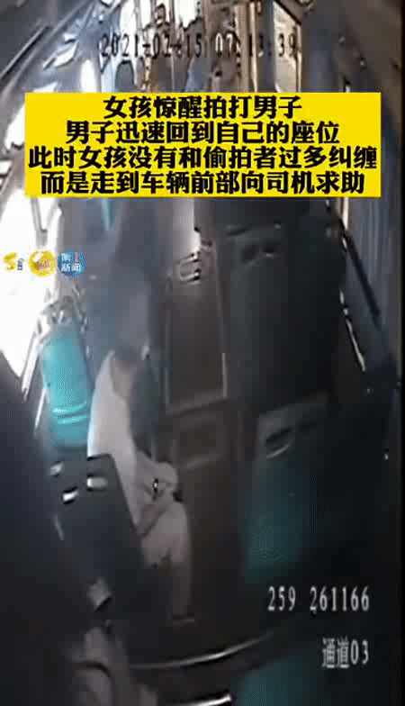 約5分鐘後,女孩驚醒過來,發現了該男子的不端行徑,出手進行了阻止,而該男子裝作無事發生,徑直坐回到此前的位置。