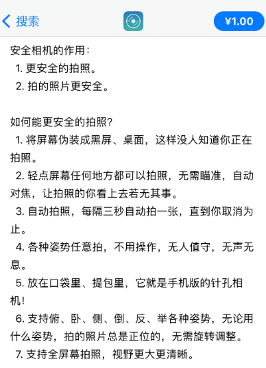 在詳情介紹中,這款相機堂而皇之地自稱是“手機版的針孔相機”。