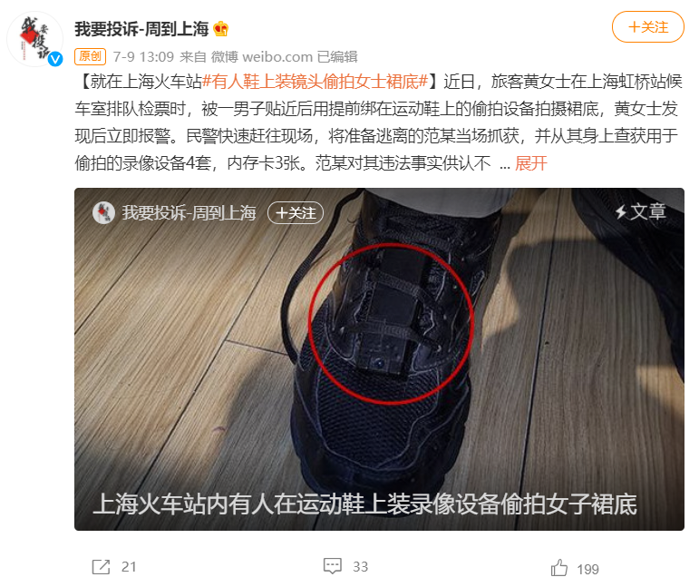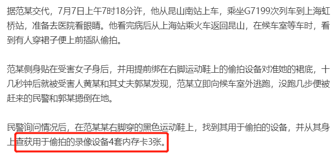在一些報道中可以發現,儘管很多偷拍者都聲稱自己是臨時起意,但往往能在他們身上搜查到大量的偷拍設備和內存卡,完全做好了隨時偷拍的準備。