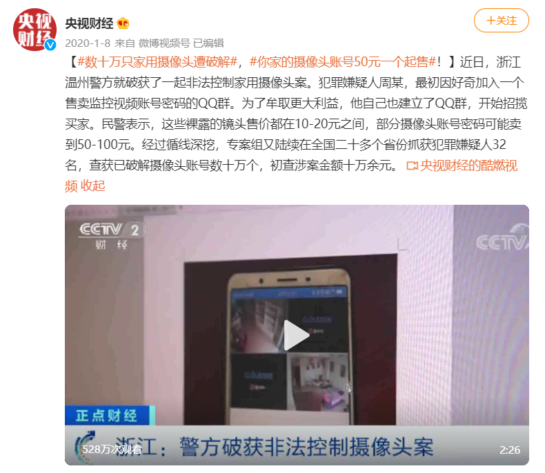 去年温州曝光過一起惡意破解家用攝像頭案件。