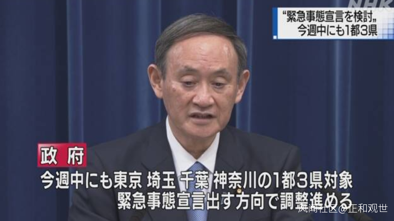 圖示:日本首相菅義偉宣佈首都圈實行“緊急事態”