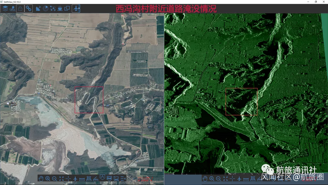 除了開展應急通信保障任務,此次,翼龍-2H還利用合成孔徑雷達執行地質災害勘測,分析研判了鞏義温堂村、滎陽西馮溝村等區域的地質受災情況,為後續救災提供了更多情報。