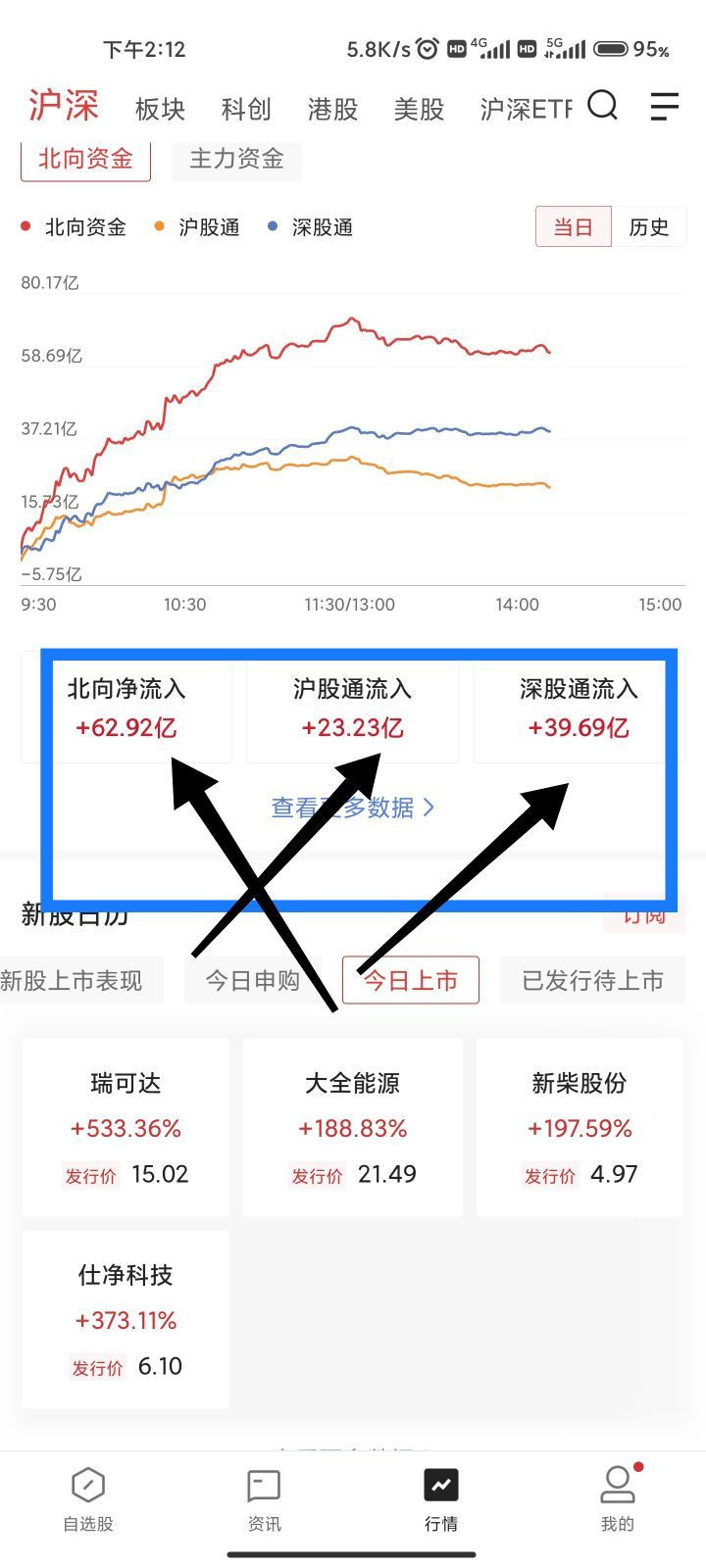 其中北向資金今天大幅度流入高達近70億元,北向資金連續三天資金流入為正流入狀態。