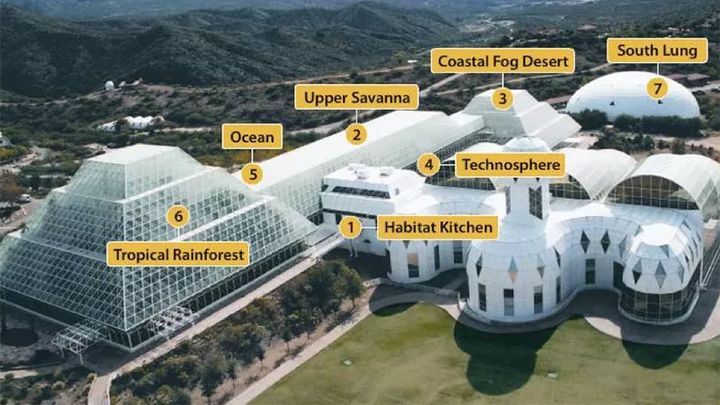 從1984年起,這位土豪就為生物圈2號怒投了2億美元。匯聚大批頂級的科學家與工程師,歷史7年的設計和施工,生物圈2號終於在美國亞利桑那州的荒漠中拔地而起。