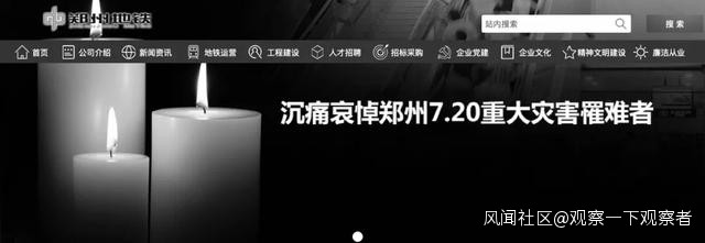 21日,鄭州地鐵集團有限公司及其運營分公司官網均已變為黑白色。中新經緯(微信號:jwview)致電該公司客服電話,相關人員回覆稱,關於該事件的相關信息,統一由市政府對外發布,請予以理解。