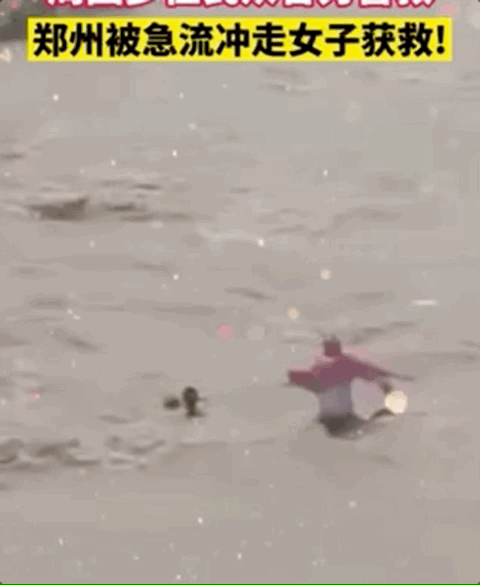 最終,女子被一人拽住,周圍的人迅速圍攏過來,抵抗住洪水的衝擊。他們挺過去了。