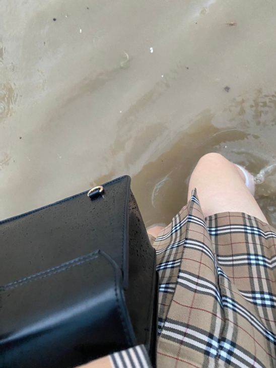 第二天,路面上的水降下去很多,姍姍掃了個單車往前騎,路過一個十字路口時,水位蔓延到了腰部。她開始犯難。