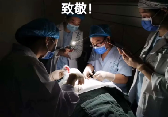 在場的醫生打開手機的手電筒,圍着一圈,照亮了手術室。