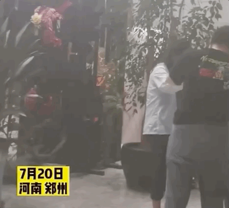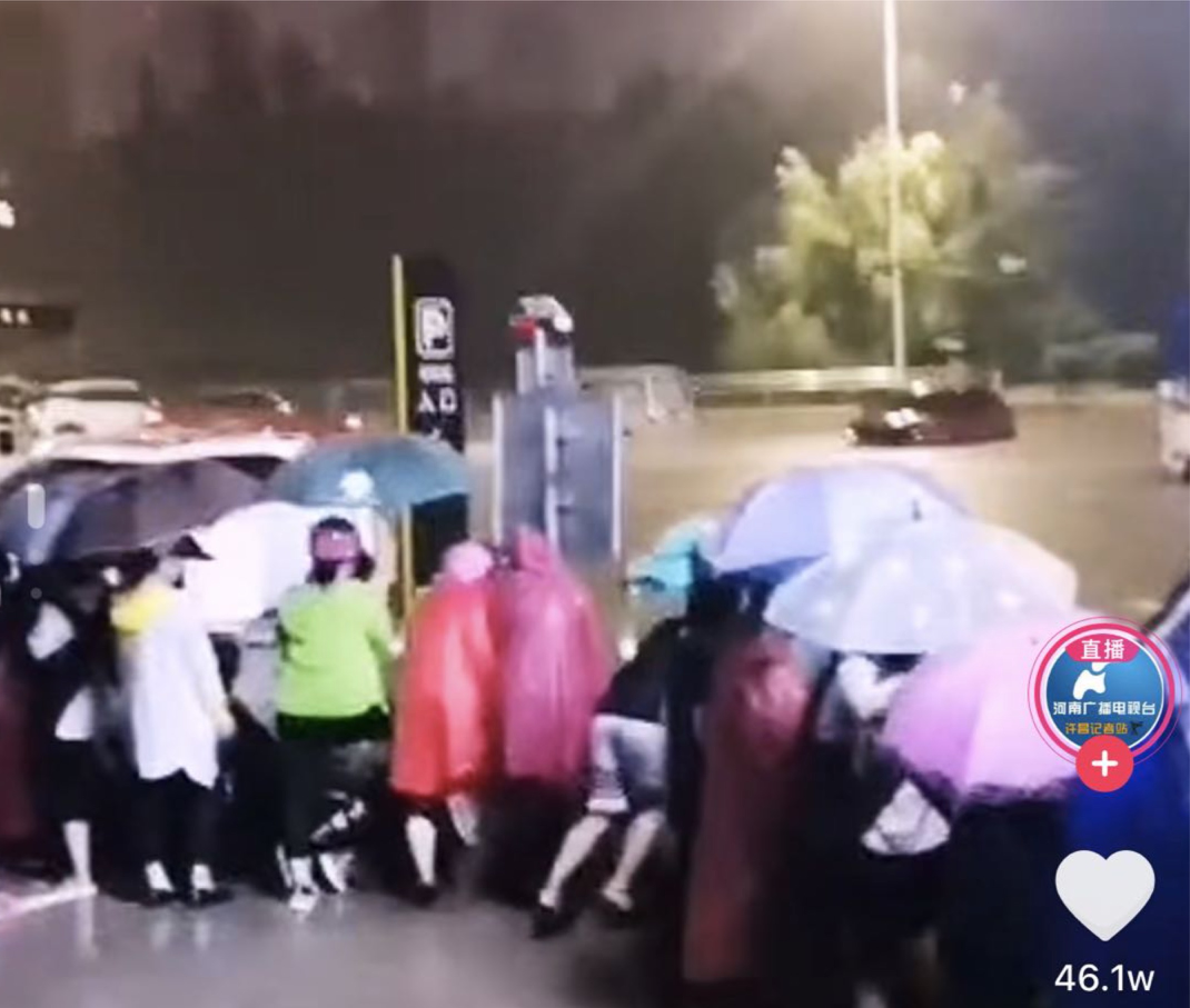7月20日,下午4點,物業通知要停電,莎莎被告知儘快下班。下樓後,門口積水已沒至膝蓋。莎莎猶豫片刻,終究沒敢蹚過去。