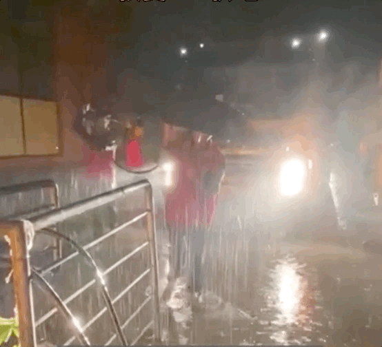 另一邊,某地下商城大水漫灌,一名男子不慎掉入水中。周圍的居民冒着大雨,死死拽住繩子。
