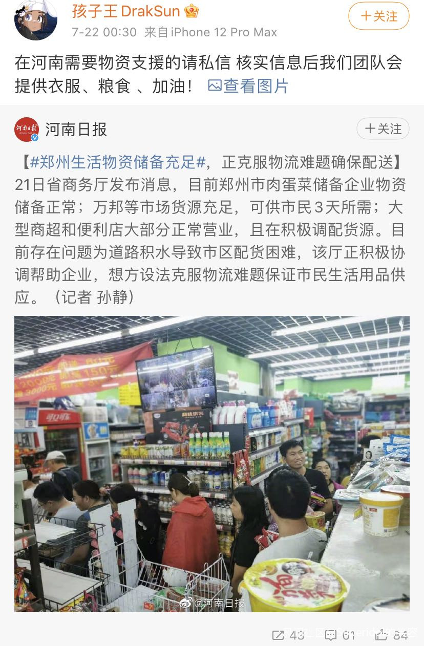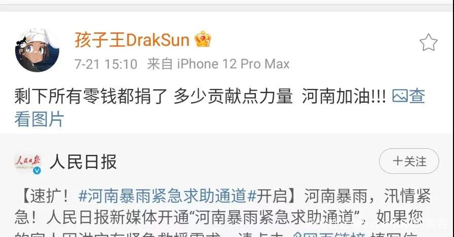 昨天有不少明星藝人為河南災區捐款捐物,Rapper孩子王DrakSun也捐了。